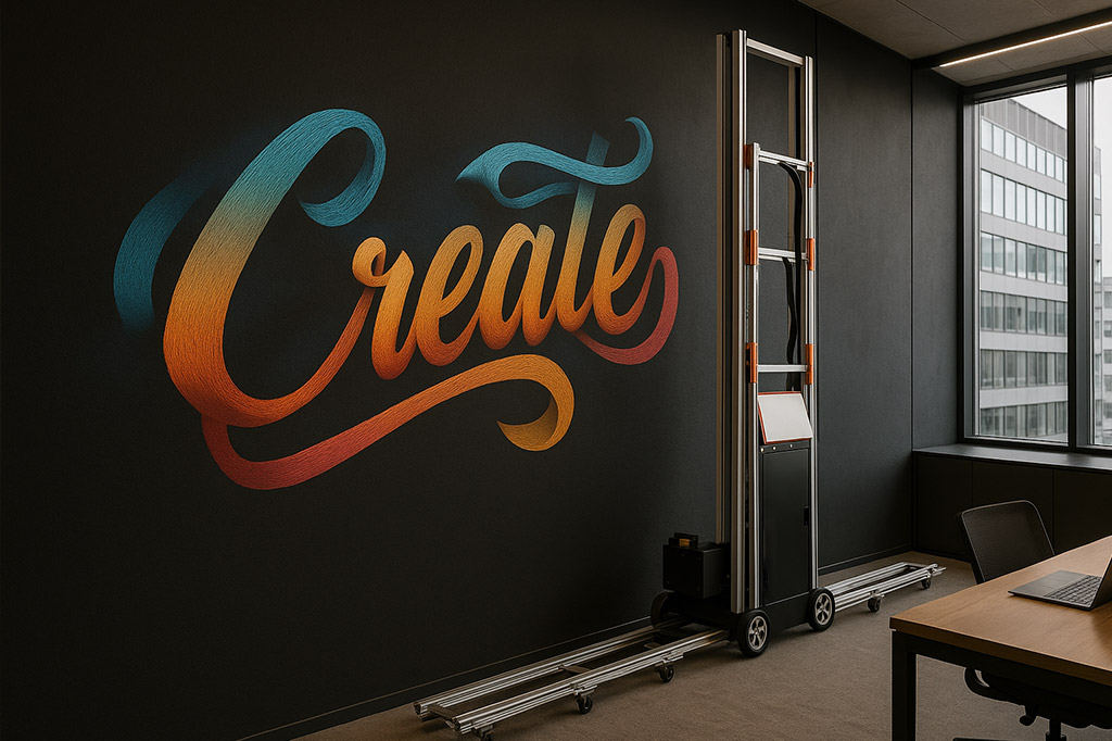 Druk ścienny w technologii UV polega na nanoszeniu grafiki bezpośrednio na ścianę przy użyciu tuszy utwardzanych światłem UV, dzięki czemu nadruk jest wyjątkowo trwały,